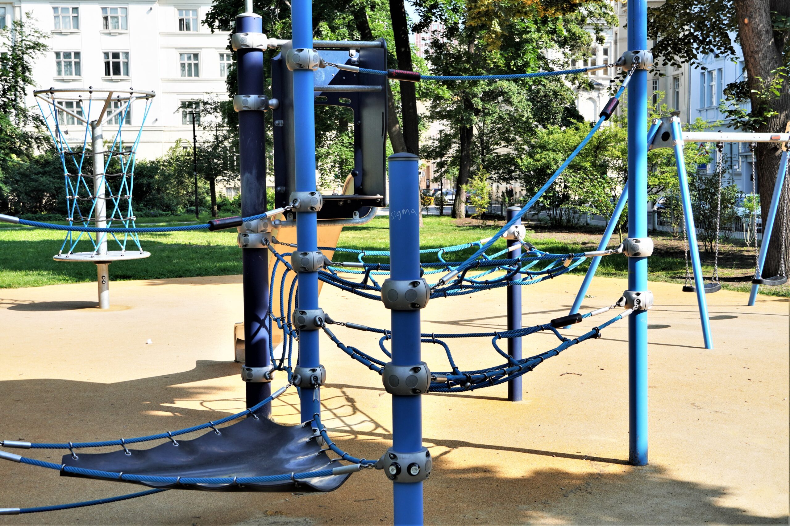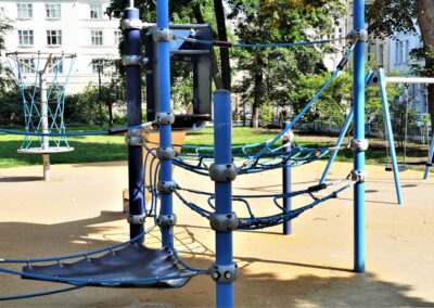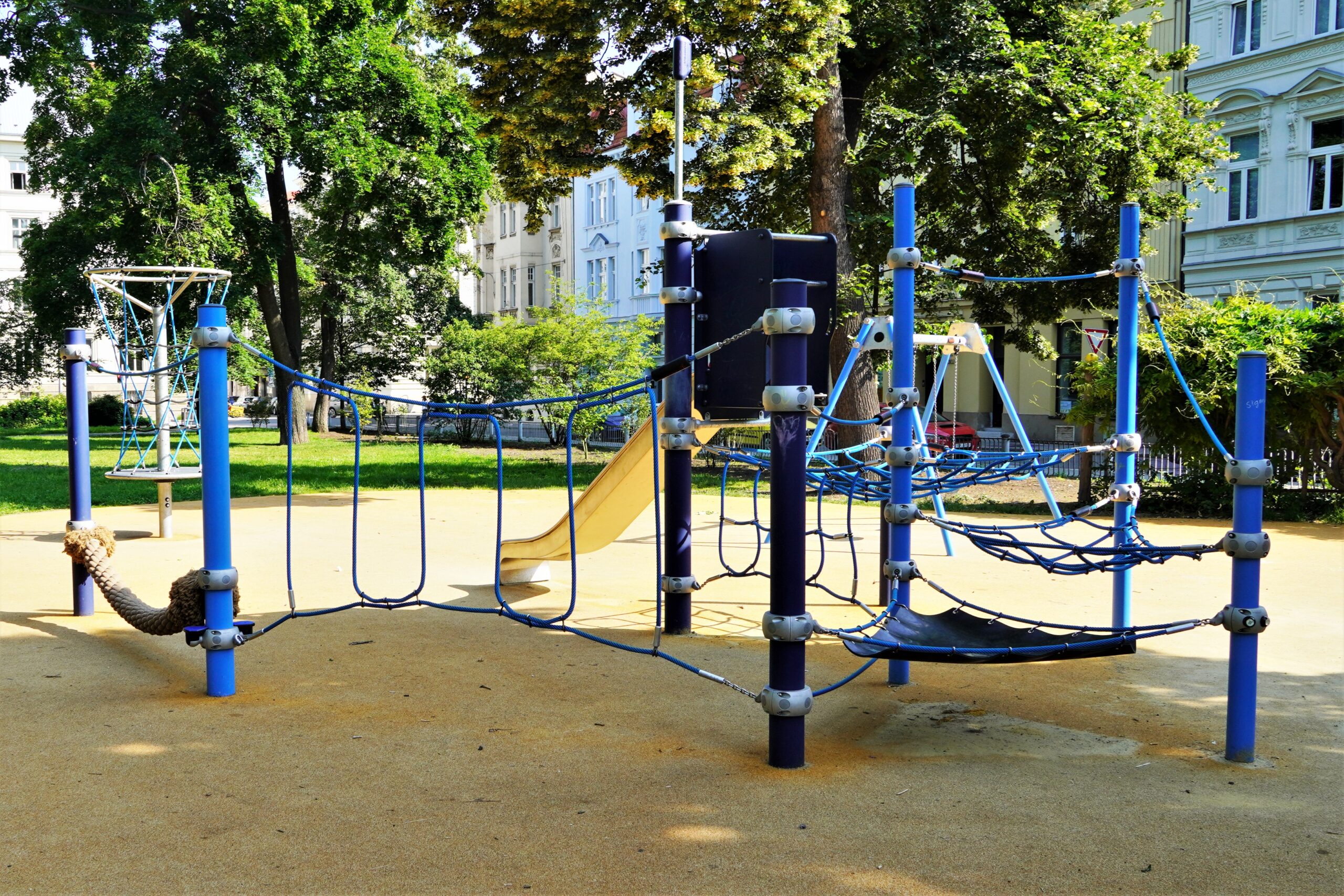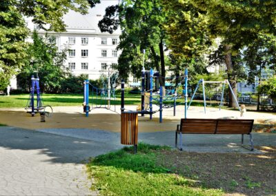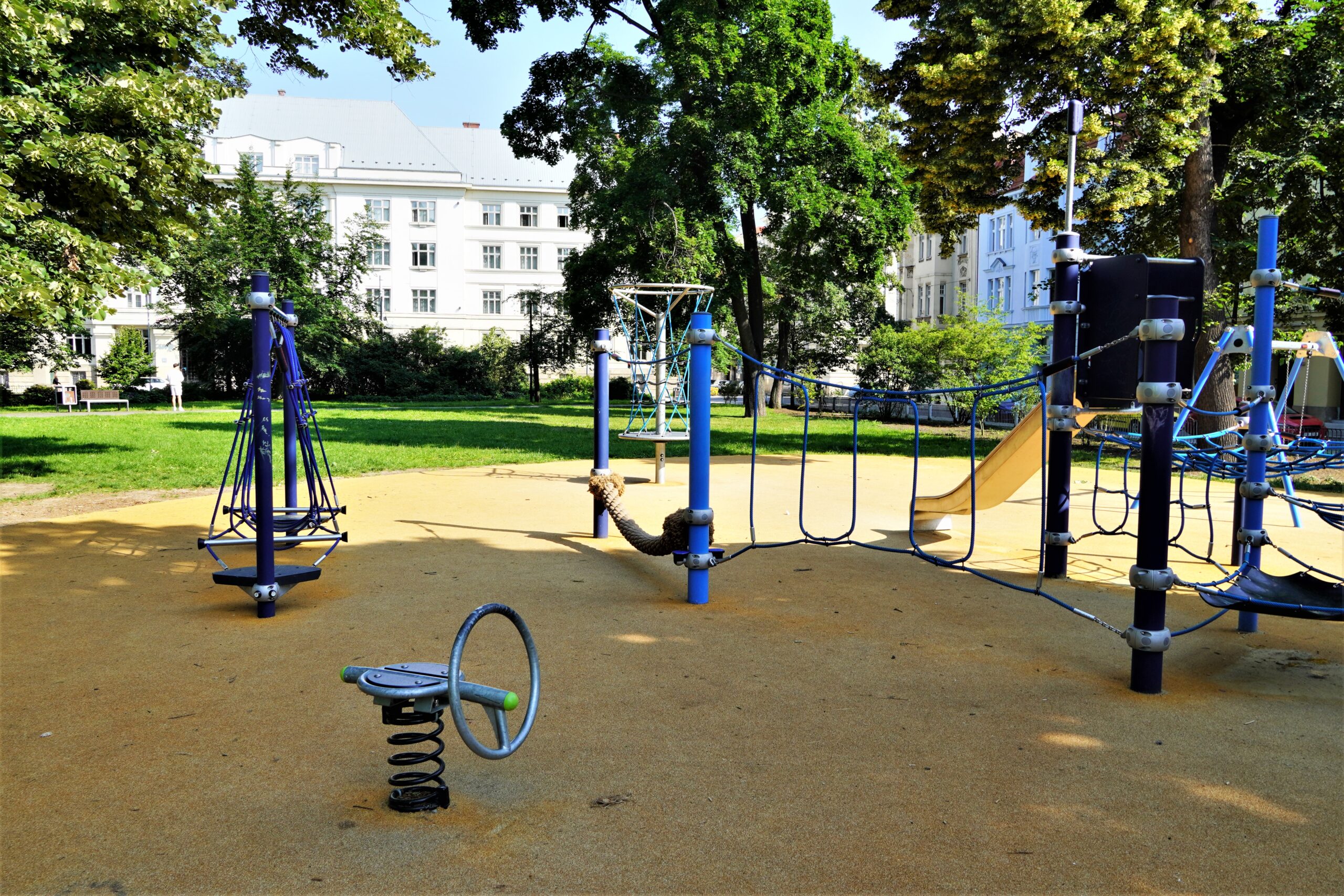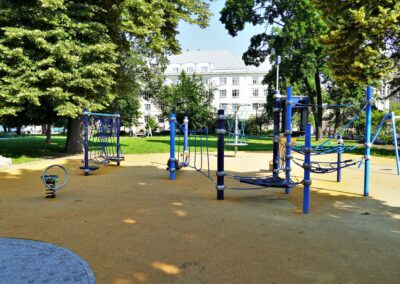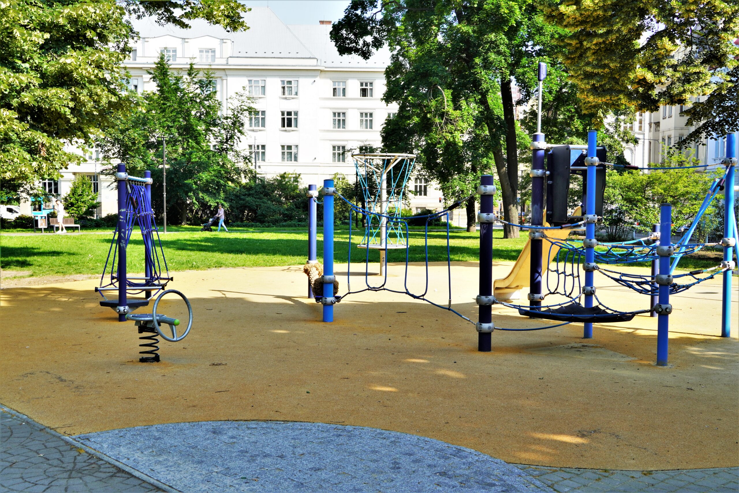 Stavba řeší odstranění stávajících nevyhovujících dětských prvků a dalších prvků/konstrukcí a výstavbu soudobého veřejně přístupného dětského hřiště. Různorodost navržených herních prvků pokrývá podstatné oblasti zájmů dětí všech věkových kategorií. Zároveň jsou zvoleny herní prvky v provedení lanových konstrukcí tak, aby svou subtilní konstrukcí pohledově nenarušovaly sadovnicko-architektonický výraz okolní zeleně v prostředí městské památkové zóny. Dispozičně jsou herní prvky i pryžová dopadové plocha do relativně malého prostoru zakomponovány tak, aby nekolidovaly se vzrostlými stromy a nezasahovaly do jejich ochranných pásem. Stávající zpevněná plocha s pískovištěm, vzrostlé lípy a vedení veřejného osvětlení s ochrannými pásmy tvořily podstatné limitující faktory návrhu hřiště.